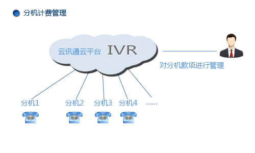 分机计费管理此功能前期条件必须开通IVR语音导航功能才能使用。分机计费管理功能是针对IVR语音导航下面的每一个分机进行单独计费管理,是由终端用户自行对分机进行充值的,在分机上所充值的话费将是从