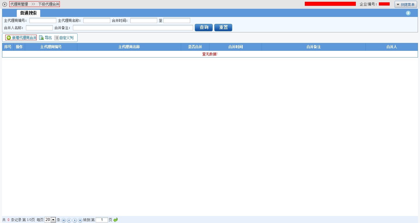 2、 进入代理商合并页面,(菜单路径: